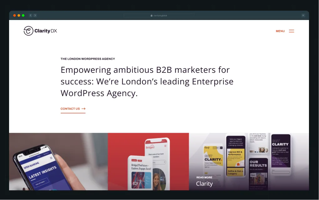 ClarityDX specializes in UX-centric websites for B2B tech, FinTech, and sustainability sectors.