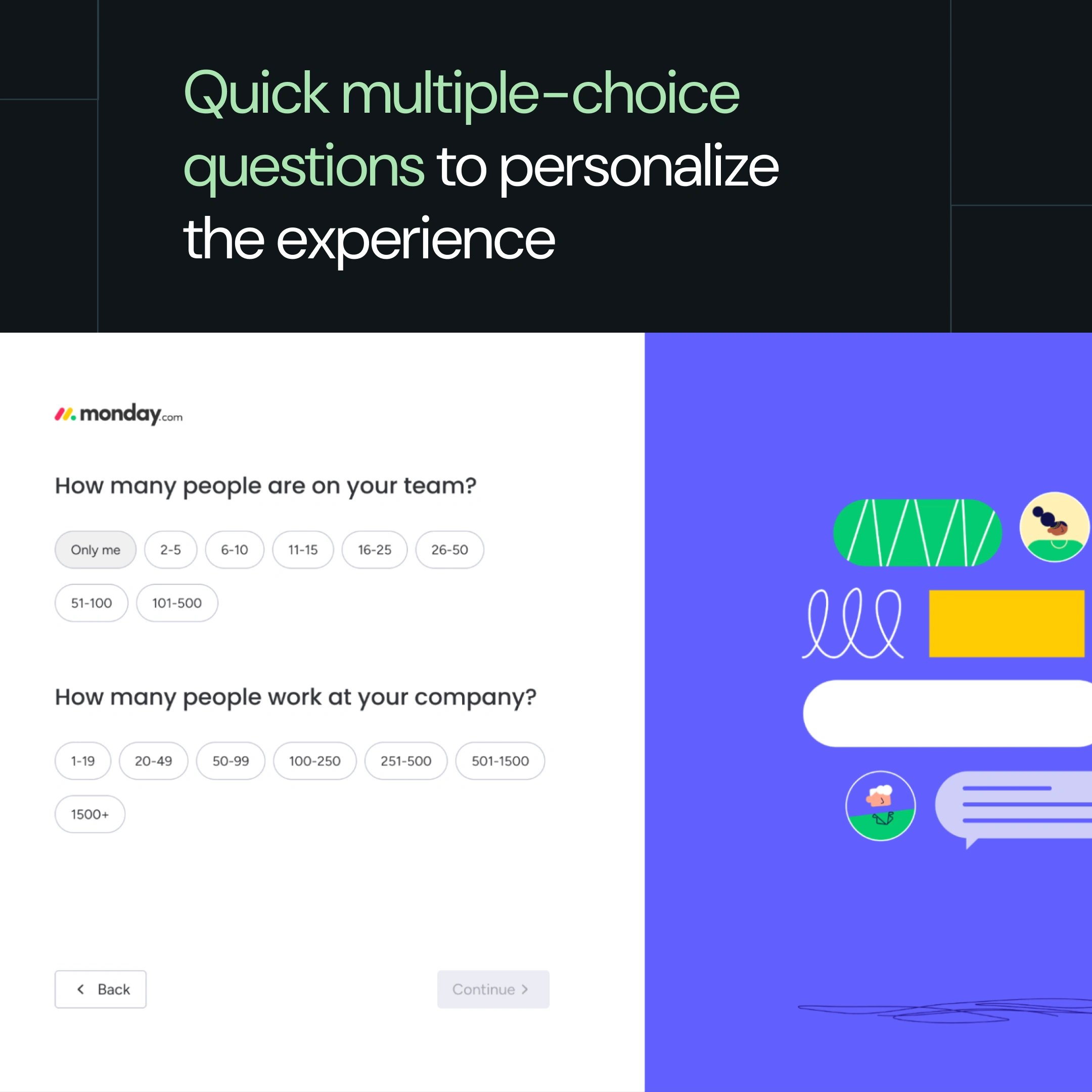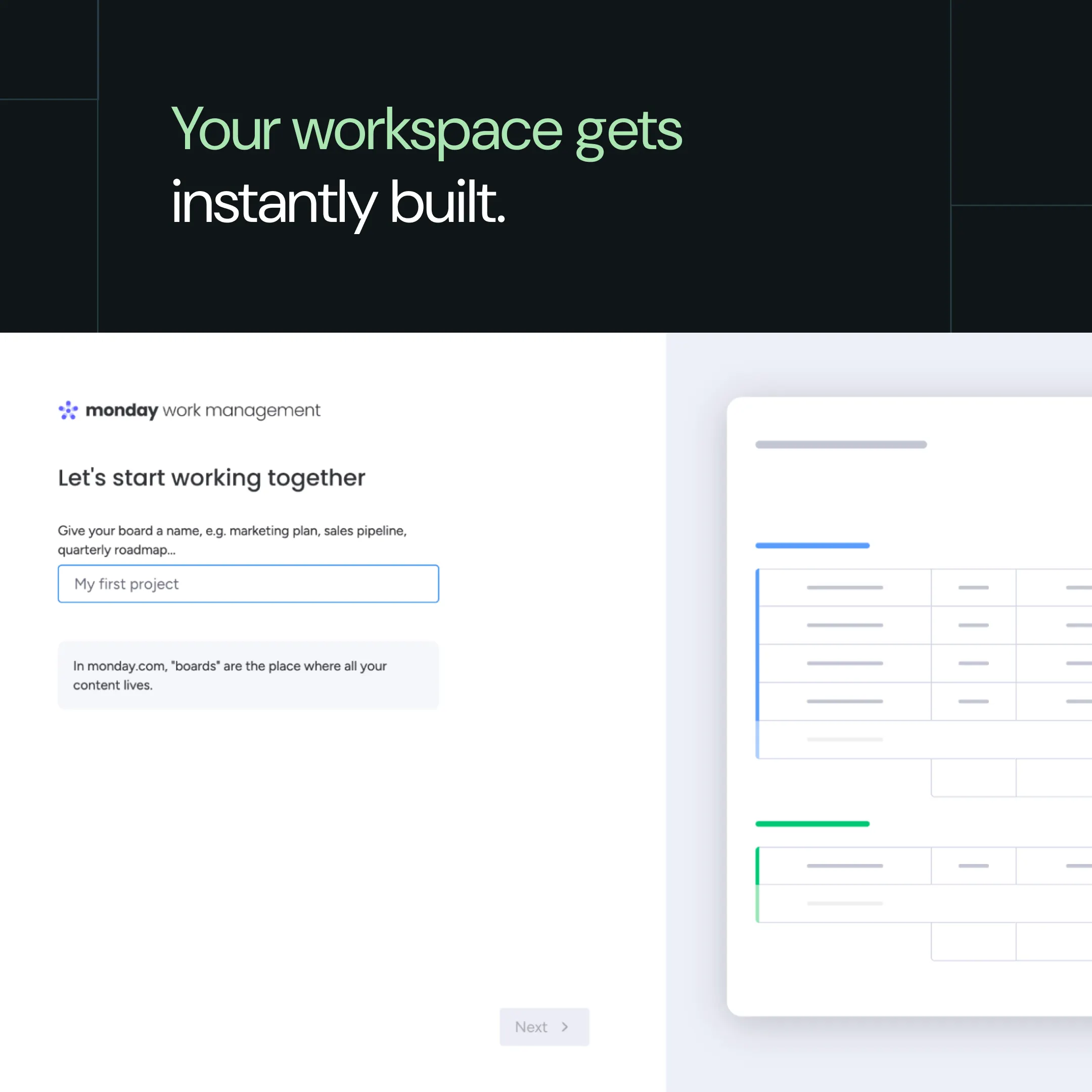 No configuration burden: Every question gives you options to click. You're not staring at a blank field wondering what to type. Monday picks the structure, columns, and layout based on what you chose. You just click.