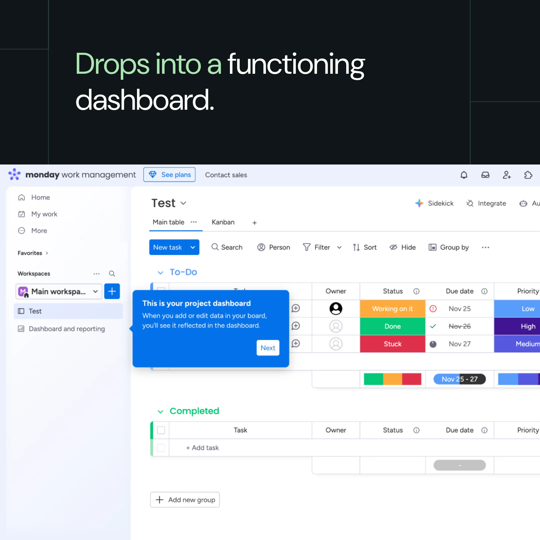 Product as the teacher: Most products point you to help docs or onboarding videos. Monday just hands you a working board. You drag tasks, change views, and click around. The product teaches itself.