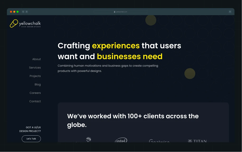 Proof in portfolio: Yellowchalk has worked with companies such as Goalwise, Vidal Health, AppAchhi, Ubona, UltraCash, and others on web and product engagements.