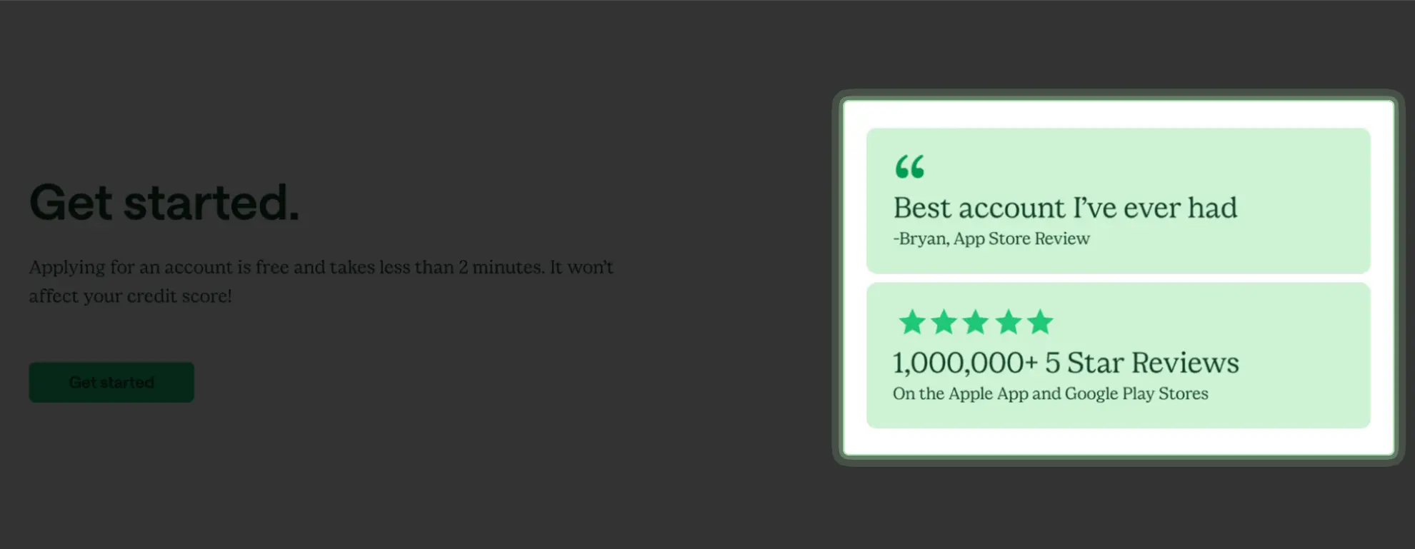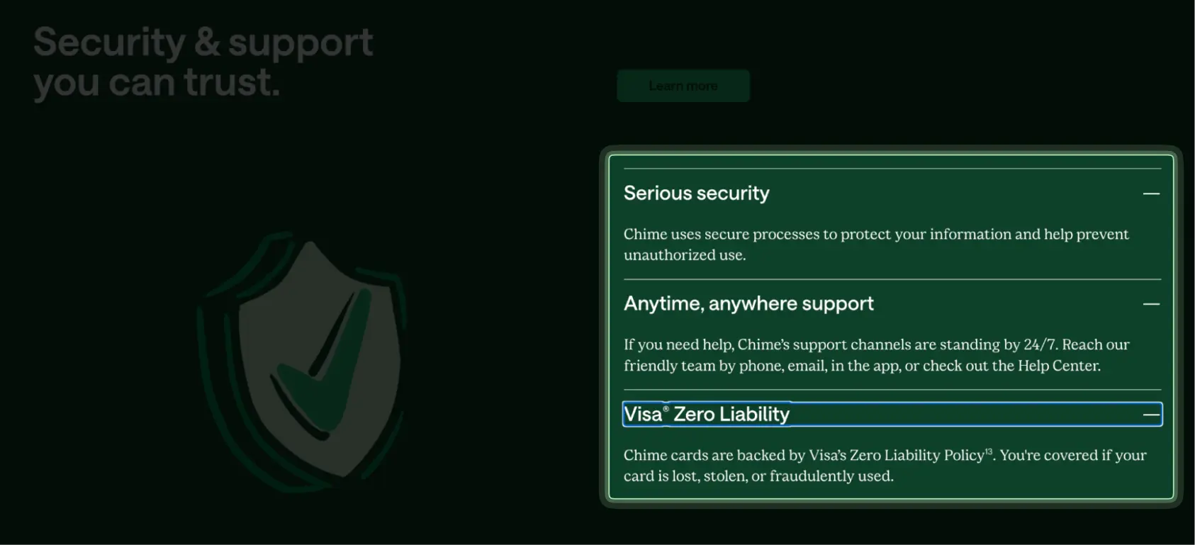 Chime checks all the boxes. From clear assurances, security cues, contextual hints, and easy edits, this finance website design is primed to ease fraud anxiety at every step.
