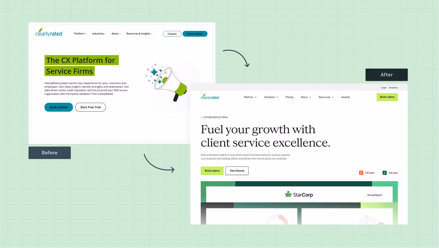 This is precisely what we did for ClearlyRated. Their users weren’t moving meaningfully through the funnel, so assets alone wouldn’t fix the problem. We had to redesign how people experienced value, not just how pages looked.