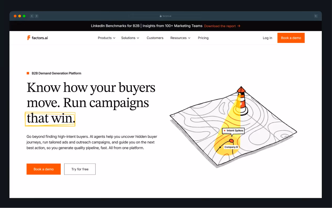 That same principle guided our work with Factors, one of our most recent and visible engagements. Factors is a B2B marketing analytics and attribution platform built for demand generation and revenue teams. Its product helps teams visualize how buyers move across touchpoints and identify what actually drives pipeline and revenue.