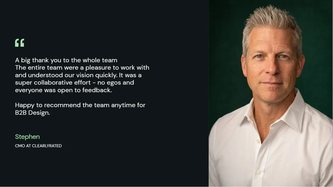 - Specialized B2B SaaS expertise: Remote agencies can pull from a global talent pool, bringing deep domain knowledge, an understanding of global GTM strategies, and internationally benchmarked design standards you may not find locally.