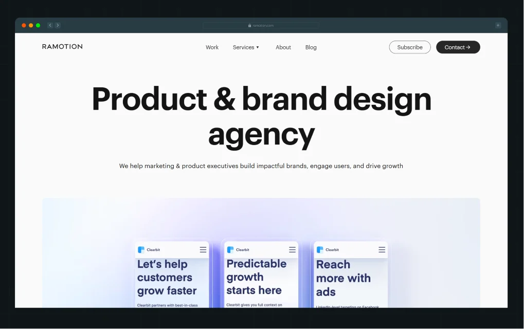 Recognized for its user-focused web design, Ramotion delivers websites that combine UI/UX expertise, fast development, and SEO strategies to create high-performance, accessible digital experiences. Their work aims to help brands scale, increase engagement, and convert visitors into customers through professional, strategic design.