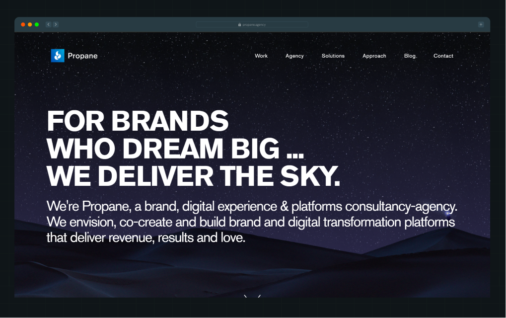 Known for delivering high-impact digital experiences, Propane helps brands dream big and scale smart. They specialize in brand, digital experience, and platform transformation, creating websites, e-commerce experiences, and internal tools that drive results, engagement, and revenue.