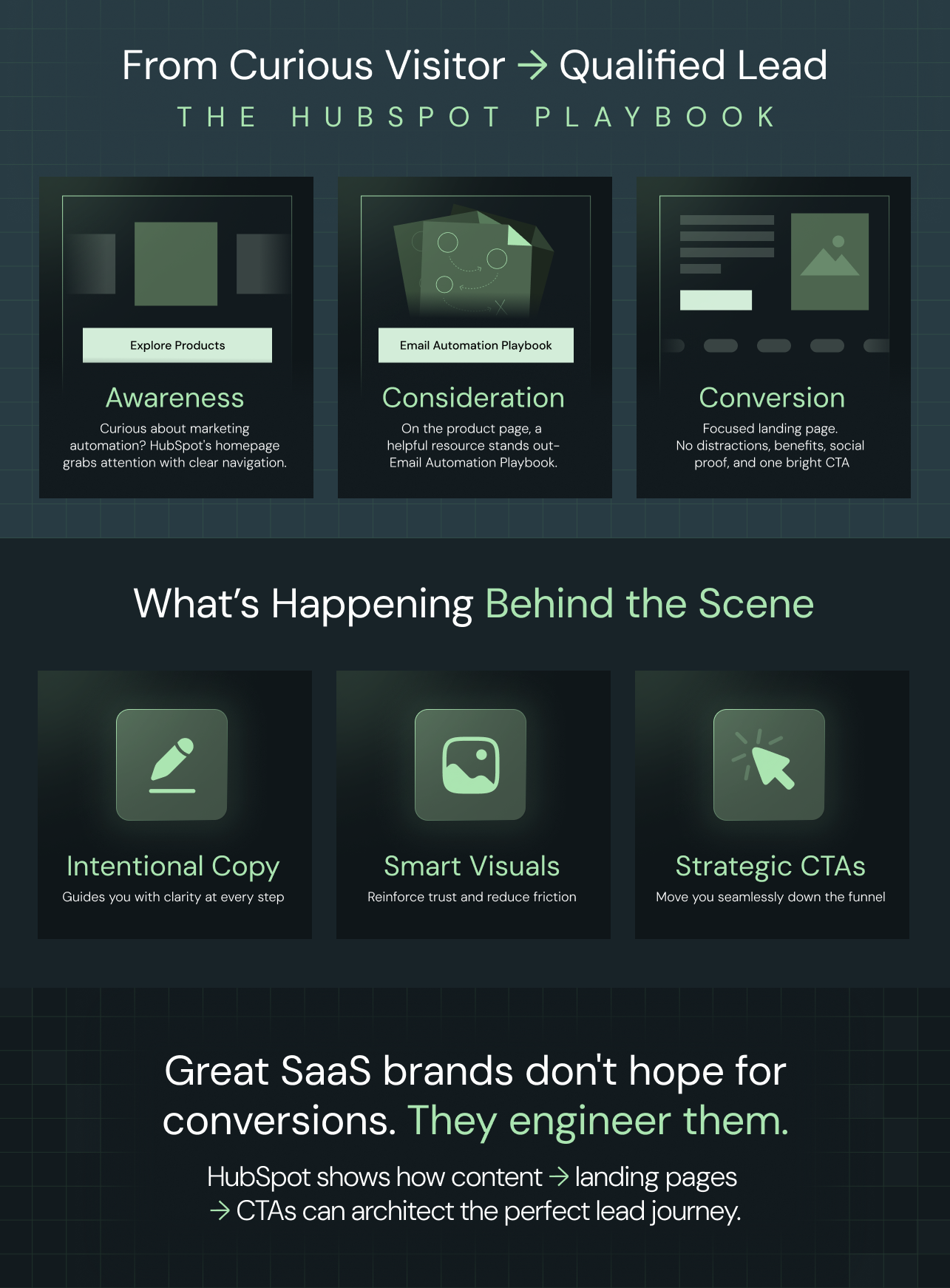 Imagine landing on HubSpot’s homepage. You’re looking for marketing automation tips. You are not ready to buy, but curious.