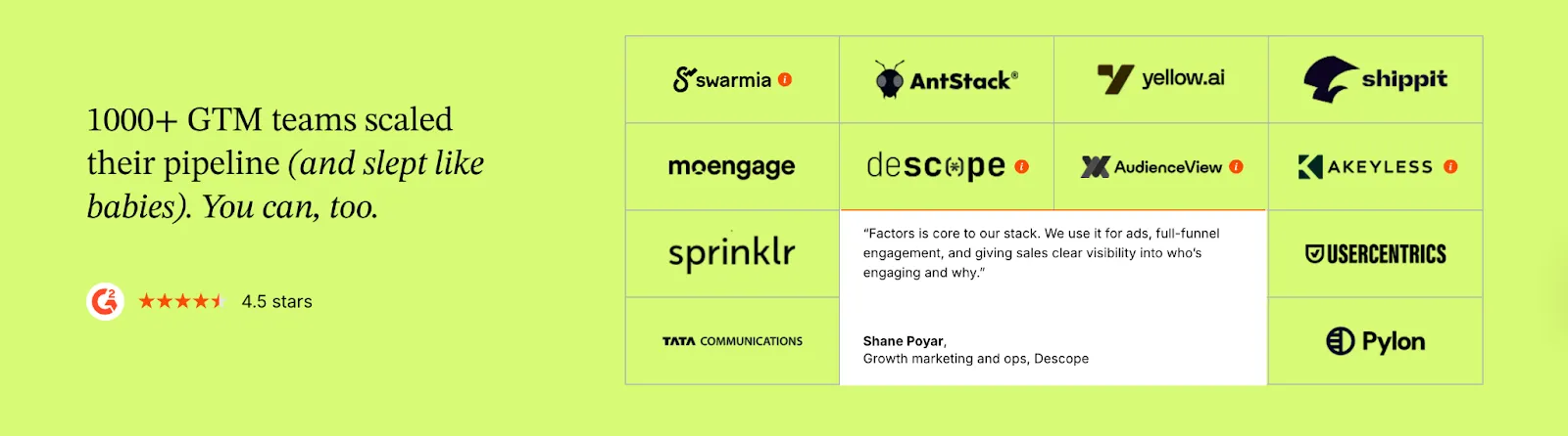 Our recent revamp of Factors.ai's website is a perfect example of SaaS conversion rate optimization best practices done right. We built a visual language for their product story that uncovered the complex B2B buying journey.