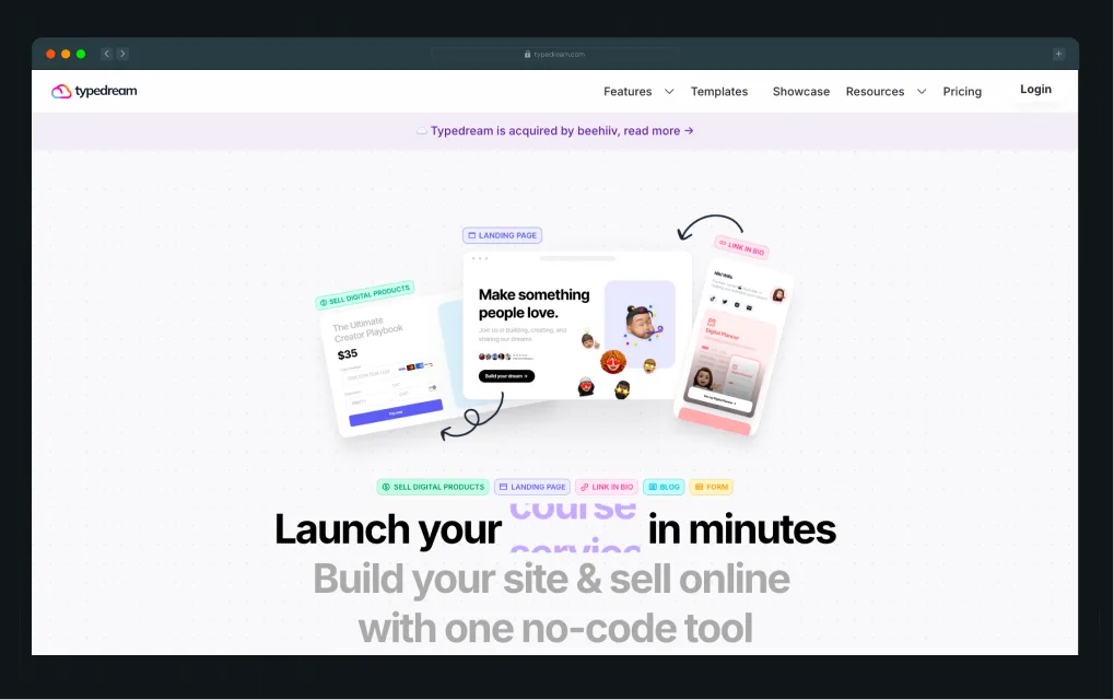 Typedream is a no‑code website builder built for simplicity. It offers a Notion‑style editor and a block‑based interface that lets users quickly create landing pages, blogs, and small product sites without wrestling with complex layout systems. It automatically handles hosting and SSL, and it provides basic SEO and dynamic content features suitable for early‑stage or simple projects.