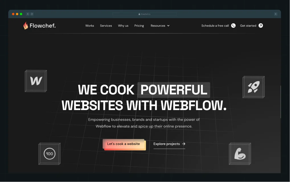 Flowchef brings a chef-like precision to Webflow development that emphasizes structure, speed, and performance. They support fully responsive builds, seamless tool integrations, and SEO optimization to ensure your site not only launches fast but also stays fast. Their toolkit includes custom animations, responsive interactions, and flexible CMS designs that adapt as your product grows.