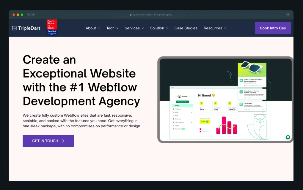 TripleDart specializes in Webflow development and landing page design with a strong focus on conversion performance. Their approach centers on actionable user journeys, optimized call-to-action flows, and minimal-friction layouts that boost engagement and drive results. They deliver responsive performance, clean visual hierarchies, and scalable Webflow sites that grow alongside your business.