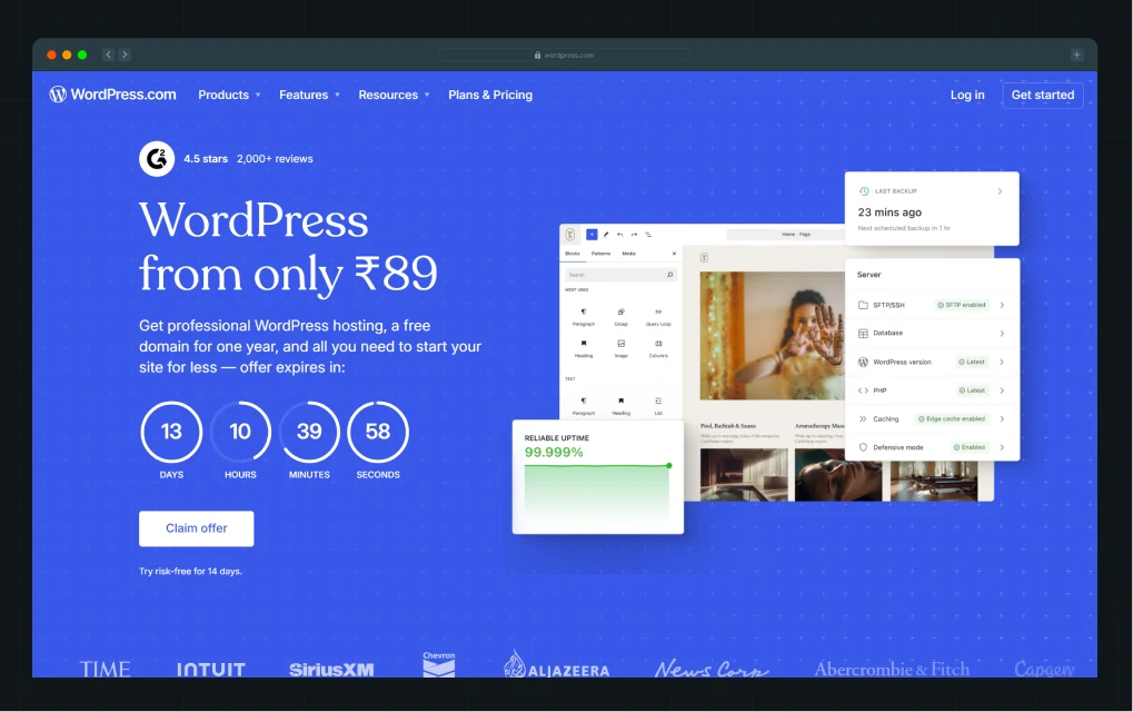 These options allow users to create custom designs without coding. With over 31,000 themes available, WordPress covers blogs, business sites, portfolios, and e-commerce stores, often at an affordable cost.