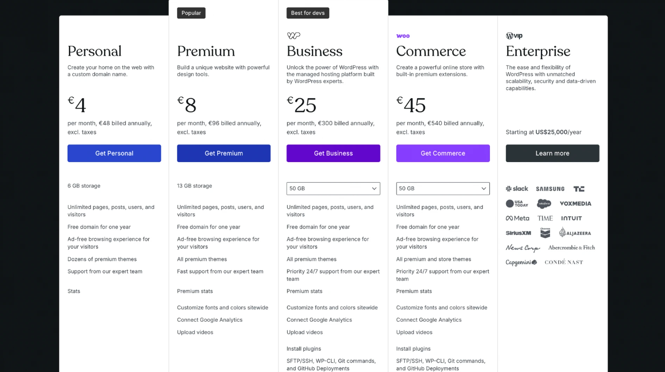 Webflow uses a subscription-based model, with plans for basic sites, CMS, business needs, and e-commerce, often including hosting and SSL. WordPress is free to install, but costs come from hosting, premium plugins, themes, and maintenance. For smaller projects or budget-conscious users, WordPress can be cheaper upfront. Webflow, by contrast, offers an all-in-one solution that reduces the need for third-party tools, saving time and complexity for teams focused on growth.