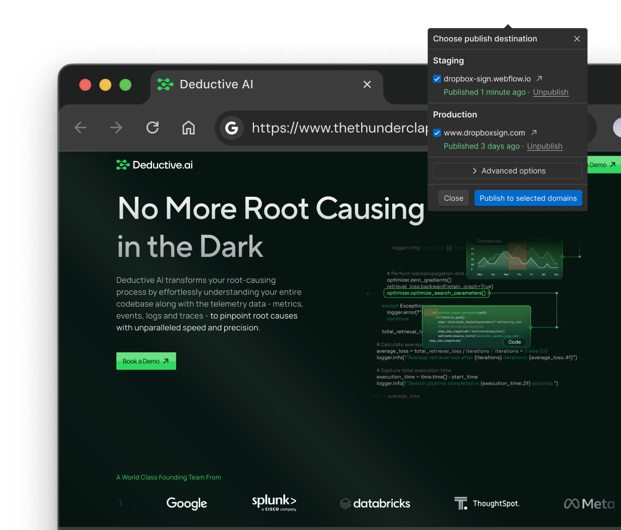 SEO-optimized Webflow builds that load fast and rank well. That's how companies like Deductive AI break into top search results within weeks of launch.
